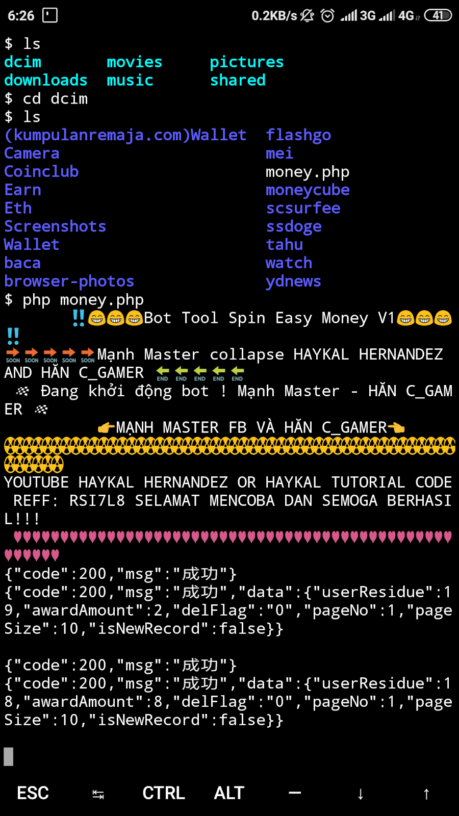 - jalankan scipt nuyul Easy Money dengan perintah di bawah ini